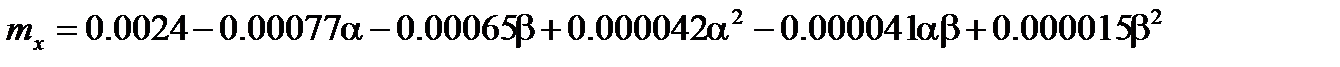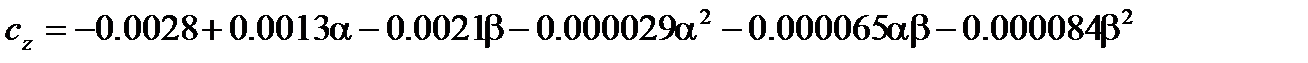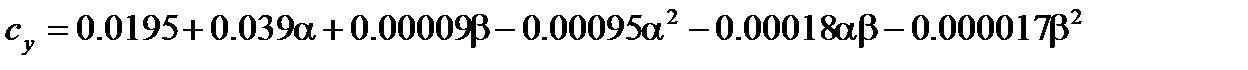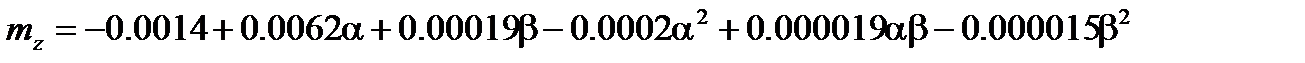 Процедура линеаризации аналогична пп. 2.8.2 и 2.8.3. Из выражения (2.49) определяются значения номинальных параметров, а аэродинамические коэффициенты определяем из графиков, представленных на рис. 2.34 – 2.37, построенных в зависимости от угла атаки и скольжения, которые равны
