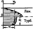 Совершенно очевидно, что характер распределения скоростей должен быть качественно различным в ламинарном слое и турбулентном ядре потока.