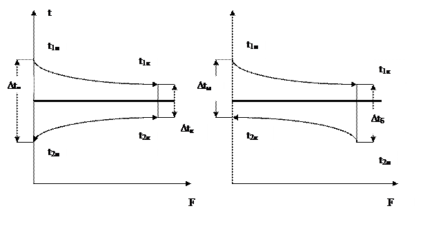 Средний температурный напор (средняя движущая сила) при прямотоке: