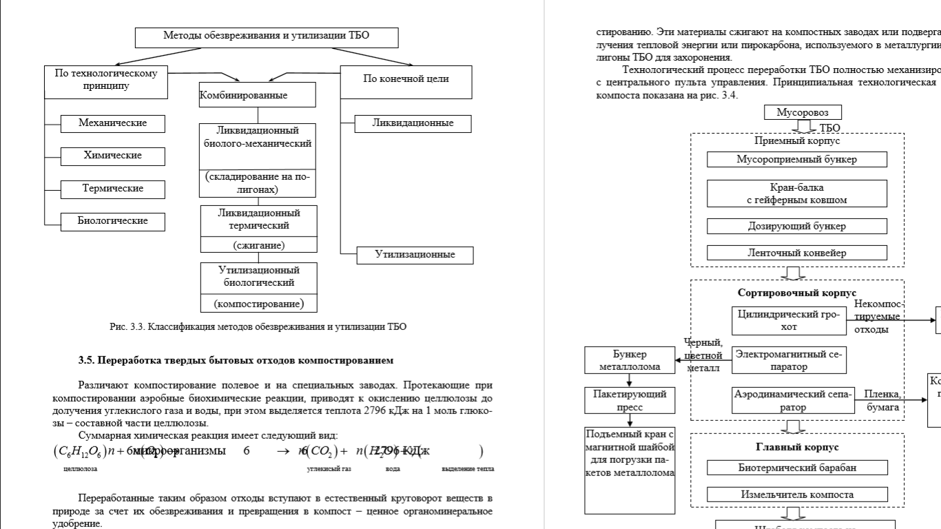 Выбор метода переработки отходов производства и потребления определяется для конкретного региона в зависимости от необходимости решения проблем охраны окружающей среды, здоровья населения, а также от экономической эффективности и рационального использования земельных ресурсов. Учет климатических, географических, градостроительных условий, а также численности обслуживаемого населения определяет решение проблемы обезвреживания и утилизации отходов в конкретных условиях. Известно более двадцати методов обезвреживания и утилизации ТБО. По технологическому принципу методы переработки и обезвреживания ТБО можно разделить на биологические, термические, химические, механические и смешанные. По конечной цели методы переработки и обезвреживания ТБО делятся на ликвидационные и утилизационные (рис. 3.3).