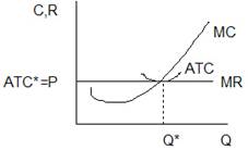 если Р*=АТС, то эк-ая Р равняется нулю, пр-во явл-я безубыточным, а фирма получает только нормальную Р.