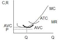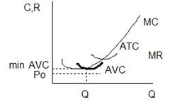 Условие прекращения производственной деят-ти В условиях, когда текущая рыночная цена не приносит в краткоср. периоде положительной эк-й Р, фирма становится перед выбором: либо продолжать убыточное пр-во, либо временно приостановить свое пр-во, но понести убытки в размере постоянных издержек (FC) пр-ва. Реш-е по данному вопросу фирма принимает исходя из соотношения своих средних переменных издержек (AVC) и рыночной цены. Когда фирма принимает реш-е о закрытии, то ее совокупные д-ды (ТR) падают до нуля, а возникающие убытки становятся равными ее совокупным постоянным издержкам. Поэтому до тех пор, пока цена > средних переменных издержек P>АVС, фирме следует продолжать пр-во. В этом случае получаемый д-д позволит покрыть все переменные и хотя бы часть постоянных издержек, т.е. убытки будут меньше, чем при закрытии. Если цена равна средним переменным издержкам P=AVC, то с точки зрения минимизации убытков фирме безразлично, продолжать или прекращать свое пр-во. Однако скорее всего фирма будет продолжать свою деятельность, чтобы не потерять своих покупателей и сохранить рабочие места служащих. П.эее убытки будут не выше, чем при закрытии. И, наконец, если цены меньше средних переменных издержек то фирме следует прекратить свою деятельность. В этом случае ей удастся избежать ненужных потерь. Условие прекращения пр-ва