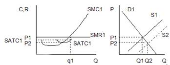 Механизм формирования долгосрочного равновесия При этих условиях оптимальный V выпуска фирмы в краткоср. периоде составит q1 единиц. Пр-во данного V обеспечивает фирме положительную экономическую Р, поскольку рыночная цена (Р1) превышает средние краткоср-е издержки фирмы (SAТC1).