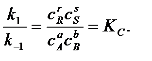 Отношение констант скоростей прямой и обратной реакций называется константой равновесия Кс: