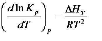 Зависимость константы равновесия от температуры выражается уравнением изобары Вант-Гоффа: