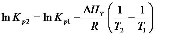 При интегрировании уравнения от Т1 до Т2 и при условии, что ΔНТ в этих пределах остается постоянной, получаем