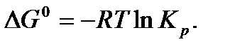 В условиях химического равновесия ΔG=0. Стандартная энергия Гиббса является характерной для реакции постоянной величиной. Поэтому и выражение под знаком логарифма должно быть постоянным. Обозначим его через Кр, которая является термодинамической константой равновесия.
