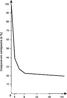 Изучение памяти явилось одним из первых разделов психологической науки, где был применен экспериментальный метод. Еще в 80-х годах XIX века немецкий психолог Г.Эббингауз предложил прием, с помощью которого, как он считал, стало возможно изучить законы «чистой памяти», независимой от деятельности мышления. Этот прием — заучивание бессмысленных трехбуквенных слогов. В ходе опытов было установлено, что после первого безошибочного повторения серии таких слогов забывание идет вначале очень быстро (рис. 11). Уже в течение первых суток забывается около 60 % всей полученной информации, а через шесть дней в памяти остается менее 20 % от общего числа первоначально выученных слогов.