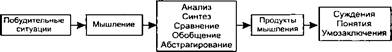 В результате мыслительной деятельности посредством ее операций в окружающей нас действительности выделяются отношения различного уровня сложности. Обобщенно решение мыслительных задач может быть представлено в виде схемы (схема 16). Скорость синтеза операций, адекватной данной задаче, определяет сообразительность.