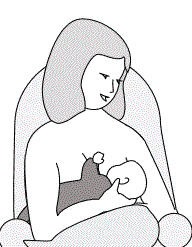 Наша мама собирается приложить ребенка к левой груди. Подавать ее она будет левой рукой. Внимательно смотрим дальше, что ей надо делать с грудью, а чего не надо;).