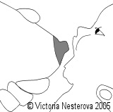 Сжатая грудь напоминает овал. Раскрытый ротик ребенка — тоже. Нам надо сделать так, чтобы овал груди был вытянут в том же направлении, что и ротик ребенка. Большой палец у нас параллелен верхней губке. Он расположен ближе к соску, чем пальцы, которые поддерживают грудь снизу.