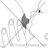 Чтобы помочь ребенку, нам надо немного сжать грудь, причем сжать в определенной плоскости. Представьте, что вас угостили большим, толстым, пышным пирогом. А вы очень голодны и хотите откусить сразу кусок побольше. Для этого вы сожмете пирог, чтоб в рот влезло побольше. Пальцы, сжимающие пирог, будут параллельны вашим губам. Сжали, приподняли пирог к носу, широко раскрыли рот и — ам!…