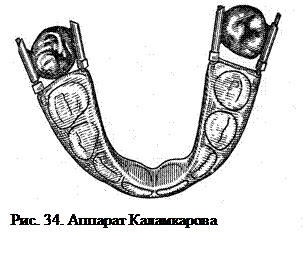 Аппарат Каламкарова – для последовательного дистального перемещения моляров (рис. 34)