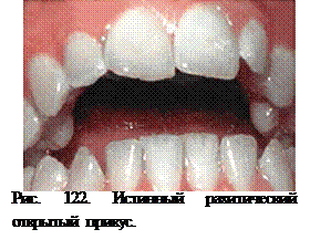 Рахит проявляется формированием истинного открытого (рахитического) прикуса (в отличие от ложного - травматического) (рис. 122).