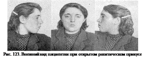 Внешне у такого пациента наблюдается несоответствие во взаимоотношениях между лицевыми и черепными костями. Лицо маленькое в сравнении с черепом, выглядит инфантильно. Нижняя треть лица увеличена (рис. 123).