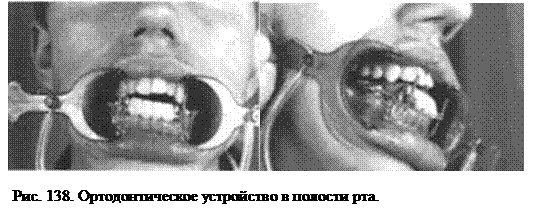 Эти аппараты можно сочетать с вертикальной внеротовой тягой (подбородочная праща с головной шапочкой).