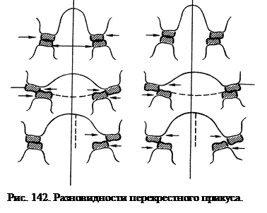а) односторонний, обусловленный односторонним сужением верхнего зубного ряда или челюсти, расширением нижнего зубного ряда или челюсти, сочетанием этих признаков;