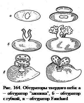 Описанные конструкции приспособлений в то время еще не имели специального названия, лишь в 1575 г. Амбруаз Паре назвал их обтураторами. Впоследствии Фошар (1728) видоизменил обтуратор Паре, заменив губку подвижными крыльями из слоновой кости. Крылья вставляли в дефект неба вертикально и посредством винта перемещали их в поперечное положение.
