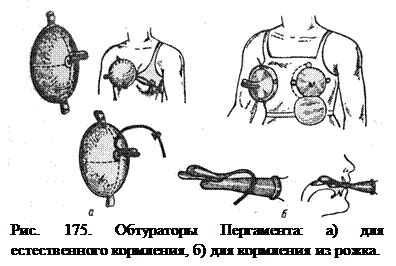 В 1938 г. П.С. Пергамент предложил обтуратор для естественного и искусственного вскармливания детей с врожденной расщелиной. Обтуратор для естественного кормления состоит из резинового полушара, который надевают на грудь матери и привязывают тесьмой вокруг туловища (или пристегивают петлями на бюстгальтере). В центре полушара имеется отверстие для соска. У верхнего края отверстия укреплена резиновая пластинка с пневматическим баллоном. К последнему прикреплена резиновая (пластинка) трубка для заполнения баллона воздухом. По сравнению с другими обтураторами этот удобно укрепляется на туловище матери, освобождая руки. Для искусственного кормления пневматический обтуратор П.С. Пергамента укрепляется на рожке.