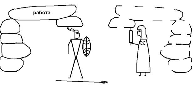 Рис. 29. Инверсия мира мужчины. В условиях безопасной внешней среды и доминирования женщины работа становится тылом, а дом – фронтом.