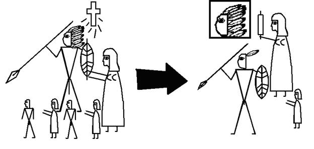 Рис. 44. Схема инверсии семейной иерархической структуры, проводимой феминизмом. Матриархальное государство вытесняет мужчину с позиции главы семьи.
