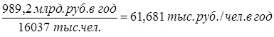 289,8 тыс. руб/чел. ∙ 0,21284 в год = = 61,681 тыс.руб. на чел. в год.