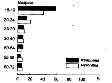 Если, например, вы решите использовать фигурную диаграмму для изображения структуры безработных женщин, среди который 57% - молодые женщины (20-24 года) и девушки 16-19 лет, не имеющие стажа работы; 28% - инженерно-технические работники и служащие со специальным образованием в возрасте 25-49 лет и 15% - работницы квалифицированного и неквалифицированного труда в возрасте 50 лет и старше, вы должны изобразить три женские фигуры, причем первая из них должна быть в 2 раза больше вгорой, а вторая - почти в 2 раза больше третьей. При построении графика одинаково важно все - правильный выбор вида графического изображения, пропорции, соблюдение правил оформления графиков. Подробнее все эти вопросы освещаются в литературе, рекомендованной к данной главе.