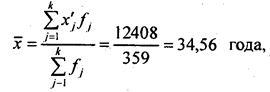 Средний возраст рабочих, рассчитанный по формуле (5.2) с заменой точных значений признака в группах серединами интервалов, составил: