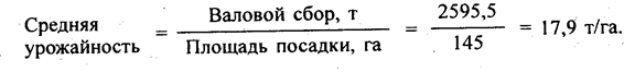 Однако исходная информация может иметь другую форму: индивидуальные значения осредняемого признака могут быть неизвестны, зато известны индивидуальные или суммарные значения объемных признаков как числителя, так и знаменателя относительной величины. Например, известно, что в акционерном сельхозпредприя-тии было посажено 145 га картофеля и собрано с них 2595,5 т продукции. При этом совершенно неизвестно, сколько было собрано с каждого гектара из 145 га в отдельности, хотя на самом деле, конечно, индивидуальные величины продукции, полученные на каждом гектаре, существовали объективно. Однако никакой потребности в их раздельном учете нет; учет продукции ведется по бригадам, по отдельным полям севооборота, но не по каждому гектару. Среднюю урожайность картофеля получают попросту делением массы собранной продукции на площадь посадки, т. е. как относительную величину, характеризующую хозяйство в целом: