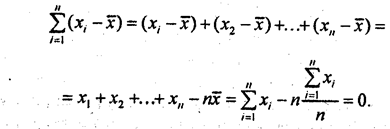 1. Сумма отклонений индивидуальных значений признака от его среднего значения равна нулю.