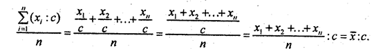 Вследствие этого свойства индивидуальные значения признака можно сократить в с раз, произвести расчет средней и результат умножить на с.