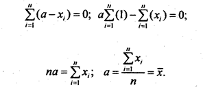Таким образом, экстремум суммы квадратов отклонений достигается при а = х. Так как логически ясно, что максимума функция не может иметь, этот экстремум является минимумом.