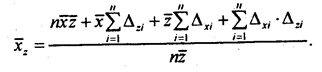 Чтобы правильно применять средние величины, следует знать, от каких причин зависит различие между простой и взвешенной средними. Рассмотрим этот вопрос на примере арифметической средней. Пусть x̅ - простая средняя, х̅z - взвешенная средняя, в которой весами выступают значения признака z, п - число единиц совокупности. Отклонения индивидуальных значений признака хi от простой средней х̅ обозначим ∆ xi = хi - х̅. Отклонения признака веса ∆ zi = zi -z̅. Тогда индивидуальные значения признаков х и z можно выразить через их средние и отклонения: хi = х̅ + ∆ xi; zi = z̅ + ∆ zi, а взвешенную среднюю х, представить в виде