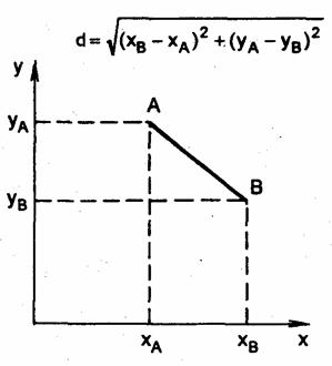 Каждая единица совокупности в кластерном анализе рассматривается как точка в заданном признаковом пространстве. Значение каждого из признаков у данной единицы служит ее координатой в этом «пространстве» по аналогии с координатами точки в нашем реальном трехмерном пространстве. Таким образом, признаковое пространство - это область варьирования всех признаков совокупности изучаемых явлений. Если мы уподобим это пространство обычному пространству, имеющему евклидову метрику, то тем самым мы получим возможность измерять «расстояния» между точками признакового пространства. Эти расстояния называют евклидовыми. Их вычисляют по тем же правилам, как и в обычной евклидовой геометрии. На плоскости, т.е. в двухмерном пространстве, расстояние между точками А и В равно корню квадратному из суммы квадратов разностей координат этих точек по оси абсцисс и по оси ординат - на основании теоремы Пифагора (рис. 6.1).