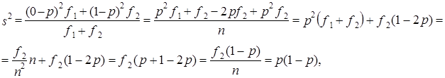 Выражение (7.13) получено в соответствии с обычной формулой дисперсии. Поскольку имеется в виду альтернативная или дихотомическая переменная, обозначим ее значение в одной категории единиц О, в другой - 1. Тогда среднее значение переменной составит: