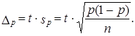 Предельная ошибка выборочной доли с принятой доверительной вероятностью имеет вид: