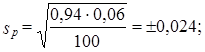 Ошибка выборки для выборочной относительной величины (доли) определяется аналогично. Дисперсия относительной величины по данным выборки