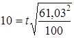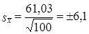 Пример. На электроламповом заводе взято для проверки 100 ламп. Средняя продолжительность их горения оказалась 1420 ч со средним квадратическим отклонением 61,03 ч. Поскольку приемщика продукции интересует качество всей партии (50 тыс. электроламп), оценивают точность полученной средней. Средняя возможная ошибка вычисленной выборочной средней