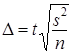 s2 - дисперсия показателя, рассчитанная по данным выборочного наблюдения;