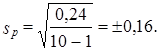 Пример. Для изучения интенсивности труда было организовано наблюдение за 10 отобранными рабочими. Доля работавших все время оказалась равной 0,40, дисперсия 0,4∙0,6 = 0,24. По табл. 2 приложения находим для F(t) = 0,95 и d.f. = n - 1 = 9, t = 2,26. Рассчитаем среднюю ошибку выборки доли работавших все время: