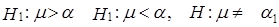 Альтернативная гипотеза Н1 может быть сформулирована по-разному в зависимости от того, какие отклонения от гипотетической величины нас особенно беспокоят: положительные, отрицательные либо и те, и другие. Соответственно альтернативные гипотезы могут быть записаны как