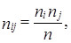 Испытаем гипотезу о независимости переменных Н0 : пij = n̂ij, где пij - генеральные частоты, оценками которых выступают выборочные частоты пij. Теоретические частоты, рассчитанные в соответствии с нуль-гипотезой как