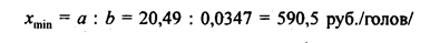 Отрицательная величина свободного члена уравнения означает, что область существования признака у не включает нулевого значения признакам и близких значений. Можно рассчитать минимально возможную величину фактора х, при которой обеспечивается наименьшее значение признака у (разумеется, положительное).