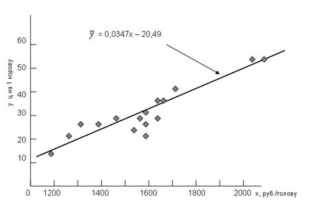 Рис. 8.1. Корреляция затрат на корову с продуктивностью