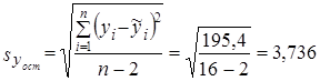 syост - оценка среднего квадратического отклонения результативного признака от линии регрессии в генеральной совокупности с учетом степеней свободы вариации.