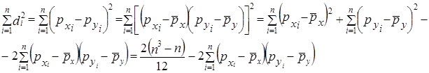 Рассмотрим далее разности рангов di =pxi –pyi и сумму их квадратов: