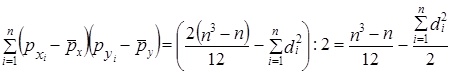 где р̅x = р̅y - средние ранги в ряду натуральных чисел от 1 до п, равные, как известно, (п +1)/2. Также известно, что сумма квадратов отклонений чисел натурального ряда от их средней величины