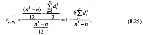 Это числитель коэффициента корреляции рангов. Подставив в (8.24) найденные выражения для числителя и для знаменателя, имеем: