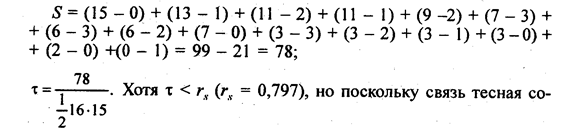 Вычислим коэффициент корреляции рангов Кендалла по данным табл. 8.4: