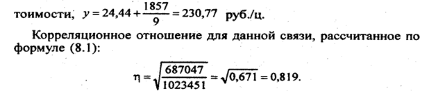 Следовательно, 67% вариации себестоимости прироста массы скота объяснились вариацией скорости роста массы животных и связанных с ней других факторов, например, чем быстрее растет масса, тем меньше расход кормов на единицу прироста массы.